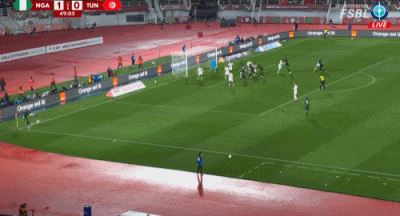 第44分钟,奥斯梅恩禁区跃起头球破门,尼日利亚1-0突尼斯