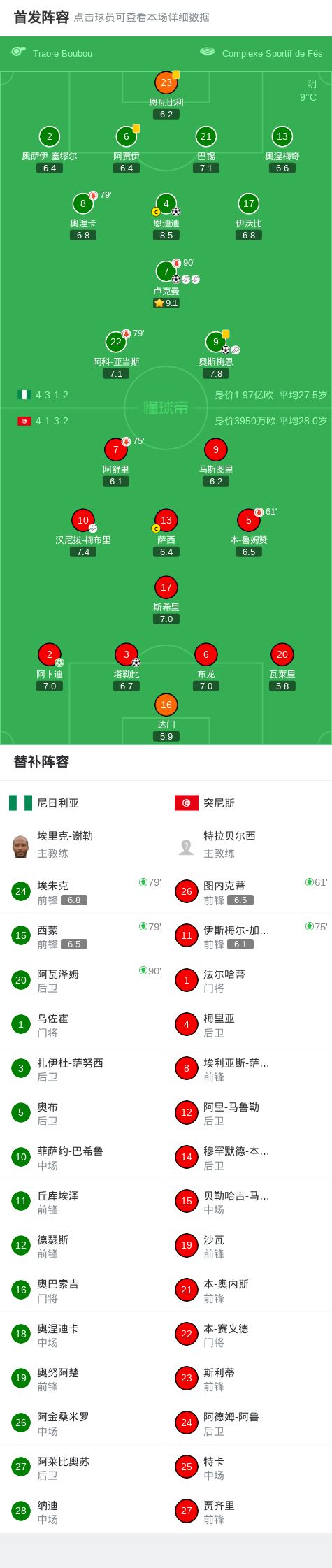 尼日利亚3-2突尼斯,奥斯梅恩、恩迪迪、卢克曼建功